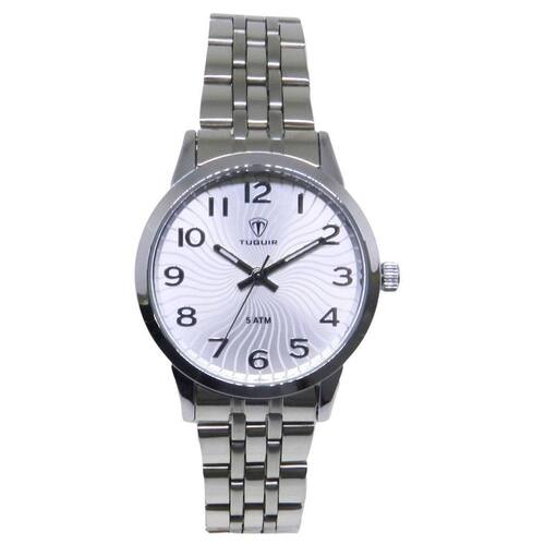 Relógio Feminino Tuguir ógico 9182C Prata Relógio Feminino Tuguir ógico 9182C Prata Marca: Tuguir Categoria: ógico ógico: Sim 1 Horário Ponteiros Fluorescentes: Selecione Digital: Não Luz: Selecione Resistente à Água: 5 ATM Pode ser para nadar no raso, por pouco tempo submerso - Respingos: Sim - Chuva: Sim - Lavar Carro: Sim - Lavar Louça: Sim - Natação: Sim - Mergulho: Não Característica do Vidro: Cristal Mineral Tipo de Fecho: Dobrável com Botão Cor da Caixa: Prata Material da Caixa: Metal Banho IP Formato da Caixa: Redondo Diâmetro da Caixa: 32,00 mm Espessura da Caixa: 9,00 mm Cor da Pulseira: Prata Material da Pulseira: Aço Largura da Pulseira: 13,50 mm Comprimento Máximo da Pulseira: 260,00 mm Alimentação: Bateria Interna Peso Líquido: 0,060 Kg Modelo: 9182C Cor Predominante: Prata : 12 Meses Conteúdo da Embalagem: 01 Relógio 01 Embalagem 01 Termo de Marca: Não Informado