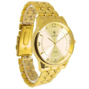 Marca: Tuguir Categoria: Analógico Analógico: Sim (1 Horário) Ponteiros Fluorescentes: Selecione Digital: Não Luz: Selecione Resistente à Água: 5 ATM - Respingos: Sim - Chuva: Sim - Lavar Carro: Sim - Lavar Louça: Sim - Natação: Sim - Mergulho: Não Característica do Vidro: Cristal Mineral Tipo de Fecho: Dobrável com Botão Cor da Caixa: Dourado Material da Caixa: Metal Banho IP Formato da Caixa: Redondo Diâmetro da Caixa: 39,00 (mm) Espessura da Caixa: 11,00 (mm) Cor da Pulseira: Dourado Material da Pulseira: Aço Largura da Pulseira: 17,50 (mm) Comprimento Máximo da Pulseira: 270,00 (mm) Alimentação: Bateria Interna Peso Líquido: 0,080 Kg Modelo: 9182D Cor Predominante: Dourado Garantia: 12 Meses