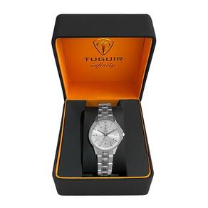 Marca: Tuguir Categoria: Analógico Analógico: Sim (1 Horário) Ponteiros Fluorescentes: Não Digital: Não Calendário: Não Despertador: Não Mostra o Dia da Semana: Não Mostra o Dia do Mês: Não Cronômetro: Não Contador Regressivo: Não Luz: Não Resistente à Água: 5 ATM - Respingos: Sim - Chuva: Sim - Lavar Carro: Sim - Lavar Louça: Sim - Natação: Sim - Mergulho: Não Característica do Vidro: Cristal Mineral Tipo de Fecho: Dobrável com Botão Cor da Caixa: Prata Material da Caixa: Aço Formato da Caixa: Redondo Diâmetro da Caixa: 35,00 (mm) Espessura da Caixa: 9,00 (mm) Cor da Pulseira: Prata Material da Pulseira: Aço Largura da Pulseira: 14,00 (mm) Comprimento Máximo da Pulseira: 220,00 (mm) Alimentação: Bateria Interna Peso Líquido: 0,071 Kg Modelo: Infinity 3114B Cor Predominante: Prata Garantia: 12 Meses