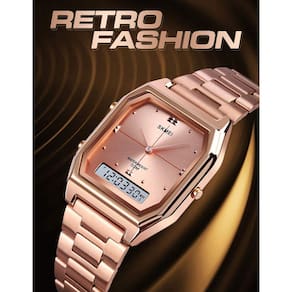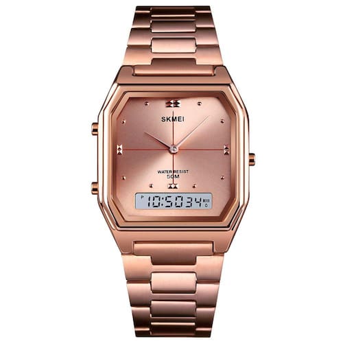 Relógio digital analógico ultrafino 5ATM Waterproof LED Alarm 3 Time Display Relógios de pulso para homens e mulheres com pulseira de aço inoxidável