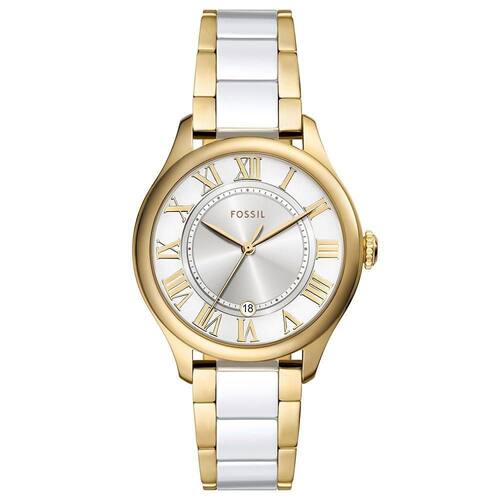 Relógio Fossil Feminino Gilmore Dourado - Ce1131/1bn Relógio Fossil Feminino Nao Definido - Ce1131/1bn Relógio Fossil Feminino Gilmore Dourado - CE1131/1BN Gênero - Feminino Sobre o Mecanismo - Analógico Formato da Caixa - Redondo Material da Caixa - Aço Cor do Mostrador - Branco Tipo de Fecho - Trava Lateral Cor da Pulseira - Bicolor Material da Pulseira - Cerâmica Garantia - 24 meses