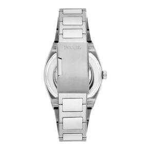 Gênero: Masculino Tipo de Relógio: Analógico com mostra com movimento Skeleton Movimento: Automático Tipo de Energia: Quartz Resistência a Água: 50 metros Cor do mostrador: Azul Cor da Pulseira: Prata Material da Caixa: Aço Inoxidável Tipo de Vidro: Cristal Mineral Largura da Caixa: 42 mm de diâmetro Garantia: 02 anos.