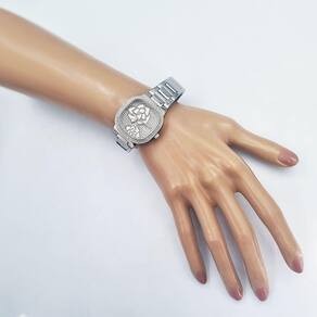 Características Formato do Relógio: Retangular Composição do Vidro: Cristal mineral Material da Caixa: Aço Inox Cor da Caixa: Prata Cor do mostrador: Branco, Prata Material da Pulseira: Aço Inox Cor da Pulseira: Prata Mecanismo: Analógico Quartz