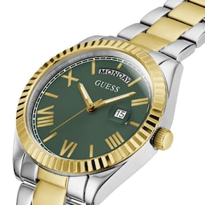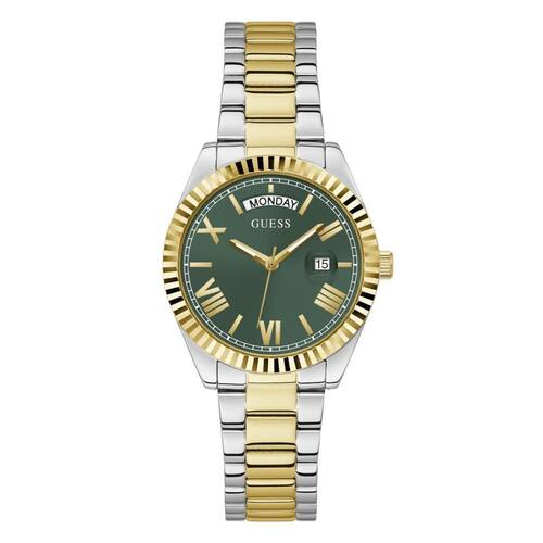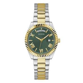 O Relógio Guess GW0308L5 é a escolha ideal para mulheres que buscam um acessório sofisticado com personalidade marcante. Seu design bicolor em aço prata e dourado cria um contraste elegante e moderno, enquanto o mostrador verde adiciona um toque diferenciado e cheio de estilo, perfeito para quem gosta de sair do comum com classe.