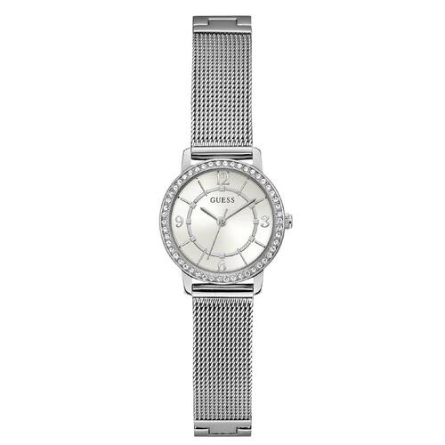 Relógio Guess Feminino Ladies Silver Tone GW0534L1 Prata Guess, a marca Californiana criadas para pessoas que gostam de luxo e elegância Os Relógios Guess possuem design próprio que realçam sua beleza e seu lifestyle. A linha Guess Ladies Dress tem o conceito de trazer o brilho e a delicadeza da mulher moderna. Especificações Técnicas Mecanismo: Analógico Quartzo Gênero: Feminino Visor: branco Vidro: Cristal mineral Prova d'água: 30m Características: pulseira em aço inoxidável prata, caixa com cristais cravejados. Diâmetro da caixa: 28mm Tipo de fecho: Fivela simples : 1 ano pela fabricante Guess Marca: Não Informado