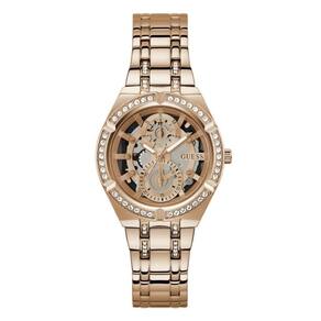 Com caixa de 36mm, o relógio oferece um equilíbrio perfeito entre elegância e destaque, sendo versátil para diferentes ocasiões desde o dia a dia até eventos que pedem um toque mais sofisticado. Um modelo que une moda, funcionalidade e o DNA marcante da Guess.