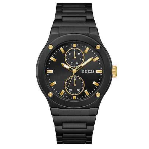 Relógio Guess Masculino Jet GW0795G3 Preto Guess, a marca Californiana criadas para pessoas que gostam de luxo e elegância Os Relógios Guess possuem design próprio que realçam sua beleza e seu lifestyle. A linha Guess Masculino tem o conceito de trazer a sofisticação para o Homem moderno. Especificações Técnicas Mecanismo: Analógico Quartzo Gênero: Masculino Visor: preto Vidro: Cristal mineral Prova d'água: 50m Diâmetro da caixa: 45 mm Pulseira: silicione preto Tipo de fecho: Fivela : 1 ano pela fabricante Guess Marca: Não Informado