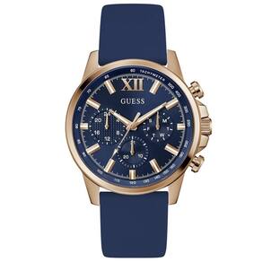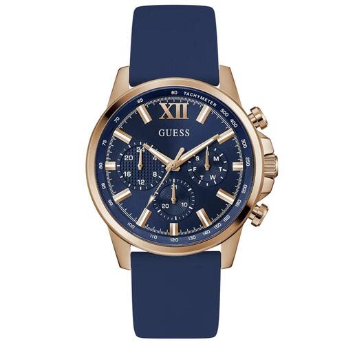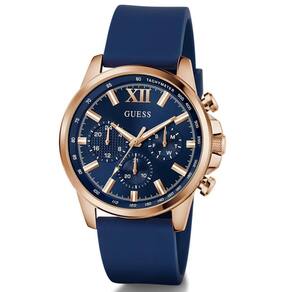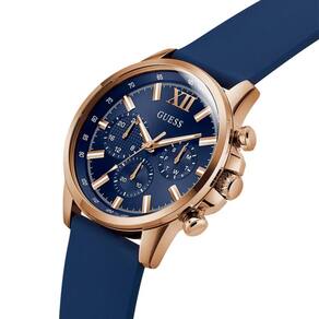 Relógio Guess Masculino Multifunção GW0913G1 Rose Guess, a marca Californiana criadas para pessoas que gostam de luxo e elegância Os Relógios Guess possuem design próprio que realçam sua beleza e seu lifestyle. A linha Guess Masculino tem o conceito de trazer a sofisticação para o Homem moderno. Especificações Técnicas Mecanismo: Analógico Quartzo Gênero: Masculino Visor: azul Vidro: Cristal mineral Prova d'água: 50m Características: cronógrafo e pulseira de silicone Diâmetro da caixa: 44 mm : 1 ano pela fabricante Guess Marca: Não Informado Ean: 7909669198635