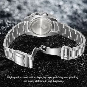 A elegância está nos detalhes, e este relógio não decepciona. A caixa redonda em liga e a pulseira de aço inoxidável proporcionam durabilidade, ao mesmo tempo que exalam uma aparência moderna e sofisticada. Combinando funcionalidade com design, o visor permanece protegido por material Hardlex, garantindo tanto estilo quanto resistência em qualquer ambiente.