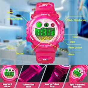 Fácil de ler para crianças: luz noturna EL, mostrador grande e números. O relógio é fácil de manusear em ambientes escuros com função de luz fria, fácil de ler o tempo com clareza para crianças. O movimento digital japonês fornece uma cronometragem precisa e precisa, facilitando a organização do tempo pelas crianças.