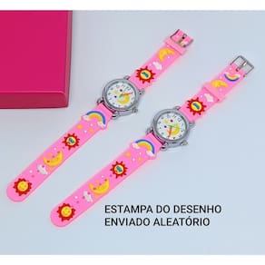 Avisos importantes: - As estampas são enviadas aleatoriamente, conforme disponibilidade em estoque. - Produto não é totalmente à prova d’água, evite submergir. - Garantia de 30 dias para sua tranquilidade. Destaques de Compra: Este relógio é o presente perfeito para crianças que adoram estilo casual e esportivo, com um toque lúdico dos desenhos animados em 3D. Ideal para usar em passeios, escola e momentos de lazer, combinando com qualquer look infantil. Faça seu pedido agora e receba seu relógio em até 24 horas úteis após a confirmação do pagamento. Garanta alegria e funcionalidade no pulso dos pequenos com um produto que é pura magia e qualidade! Relógio Infantil Analógico 3D - a união perfeita entre moda, esporte e diversão para crianças em crescimento!