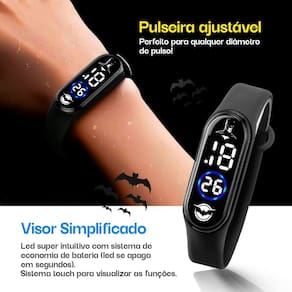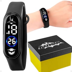 Relógio Infantil Digital Estilo Bracelete Orizom Kids Batman Preto Surpreenda seu pequeno com o incrível Relógio Infantil Digital Orizom Kids com temática do Batman. Este relógio foi projetado especialmente para crianças e adolescentes, combinando estilo, praticidade e a figura icônica do herói Batman. Design Moderno: Relógio digital no estilo bracelete, ideal para o uso diário. Seu design discreto e todo preto é perfeito para os fãs do Batman, proporcionando um visual moderno e divertido. Temática Batman: Este modelo exclusivo apresenta uma temática inspirada no Batman, com elementos que remetem ao herói, tornando-o um acessório desejado por crianças e adolescentes. Pulseira Ajustável: Fabricado com uma pulseira de silicone ajustável, o relógio se adapta perfeitamente a qualquer tamanho de pulso, garantindo conforto durante o uso. Resistente à Água: O Relógio Orizom Kids é à prova d'água, proporcionando segurança e durabilidade, mesmo durante atividades aquáticas ou em dias chuvosos. Qualidade Premium: Produto de alta qualidade, feito com materiais resistentes e duradouros, garantindo um uso prolongado e satisfatório. Inclui Caixa Personalizada Batman: Este relógio vem acompanhado de uma caixa personalizada do Batman, ideal para armazenar o relógio com segurança. A caixa também serve como um elemento crucial para presentear, tornando-o o presente perfeito para o Dia das Crianças ou para qualquer ocasião especial.Demonstre carinho e cuidado ao escolher este presente, que não só é funcional, mas também cheio de estilo e personalidade. Adquira agora o Relógio Infantil Digital Orizom Kids com temática Batman e presenteie seu pequeno com um acessório que reflete sua paixão por super-heróis, enquanto proporciona qualidade e conforto no dia a dia. Este é o presente ideal para o Dia das Crianças!