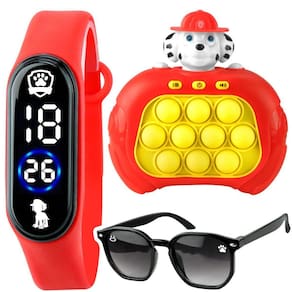 O kit inclui um Relógio Digital Infantil em forma de bracelete com a temática da Patrulha Canina. Este relógio vermelho vibrante não apenas ajuda as crianças a manterem o horário, mas também adiciona um toque de diversão ao seu pulso. Com uma pulseira de silicone ajustável e resistência à água, é perfeito para acompanhar as aventuras do dia a dia com segurança e estilo.