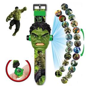 Relógio Infantil Hulk 3D com Projetor de 24 Imagens No total são 24 imagens diferentes no projetor do relógio. Basta apertar o botão lateral e apontar para a parede que a imagem aparecerá.