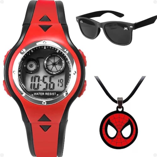 Relogio Infantil Led Vermelho + Oculos Proteção Uv Casual Preto Social Homem Aranha Digital kit Infantil Homem-Aranha com Relógio Digital, Colar e Óculos Encante seu filho com este incrível kit infantil do Homem-Aranha Agora ele poderá exibir todo o estilo e a magia deste incrível herói em seu dia a dia, seja na escola, em festas ou nos momentos de diversão. O relógio digital possui um design moderno, com luz de LED para facilitar a visualização das horas no escuro, e é resistente, garantindo durabilidade para acompanhar as aventuras do seu pequeno herói. Os óculos infantis são perfeitos para proteger os olhos das crianças contra os raios solares, e trazem toda a temática do Homem-Aranha em sua , proporcionando um visual incrível e seguro ao mesmo tempo. O colar infantil, com pingentes exclusivos do Homem-Aranha, completa o kit, garantindo que seu filho tenha um look personalizado e cheio de estilo. Este kit é o presente ideal para qualquer ocasião, seja para presentear seu filho ou para agradar uma criança especial. Adquira já e proporcione momentos mágicos e divertidos com o herói favorito das crianças