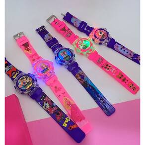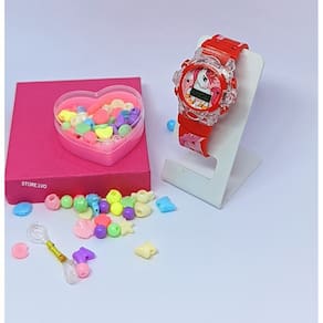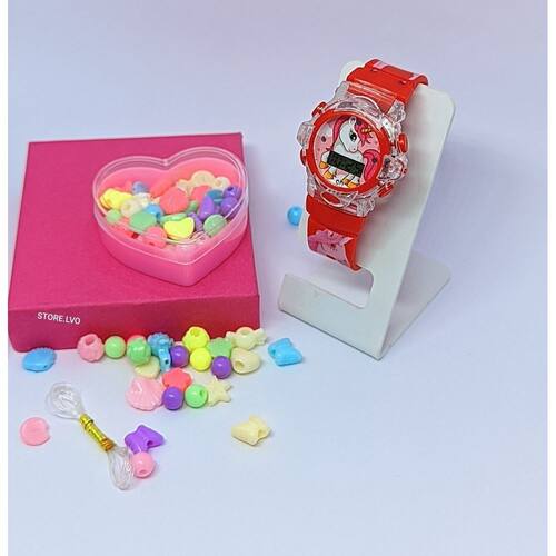 Relógio Infantil Menina Digital Pisca Luz Led Princesas Disney + Kit Miçangas para Montar Criar Pulseiras Colares Anel - Cor: Pony