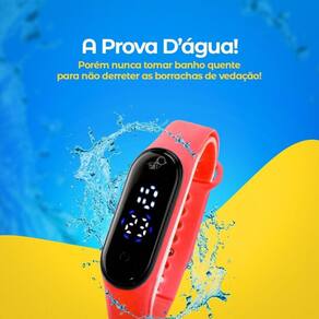 - Modelo: Kids - Cor: Vermelho - Maquinário: Preto com números brancos para fácil leitura - Resistência à água: Prova d'água - Pulseira: Vermelha em silicone, ajustável - Idade recomendada: A partir de 4 anos até adolescentes