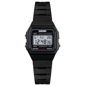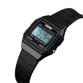 Relógio Infantil Skmei Digital 1460 Preto Marca: Skmei Categoria: Digital Analógico: Não Digital: Sim (1 Horário) Calendário: Sim Despertador: Sim Mostra o Dia da Semana: Sim Mostra o Dia do Mês: Sim Cronômetro: Sim Contador Regressivo: Não Luz: Sim Cor da Iluminação: Verde Resistente à Água: 5 ATM (Pode ser usado para nadar no raso, por pouco tempo submerso) - Respingos: Sim - Chuva: Sim - Lavar Carro: Sim - Lavar Louça: Sim - Natação: Sim - Mergulho: Não Característica do Vidro: Acrílico Tipo de Fecho: Fivela Cor da Caixa: Preto Material da Caixa: Plástico Formato da Caixa: Redondo Diâmetro da Caixa: 24,90 (mm) Espessura da Caixa: 9,20 (mm) Cor da Pulseira: Preto Material da Pulseira: Plástico Largura da Pulseira: 13,00 (mm) Comprimento Máximo da Pulseira: 200,00 (mm) Alimentação: Bateria Interna Peso Líquido: 0,000 Kg Modelo: 1460 Cor Predominante: Preto Garantia: 12 Meses