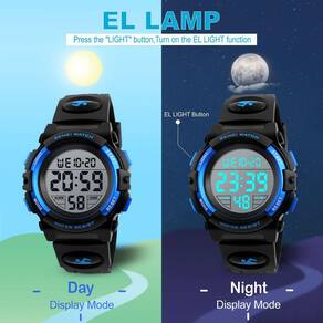 Característica principal:? Design de moda: o contorno tridimensional do mostrador grande, com cores simples, torna o design geral do relógio cheio de dinâmica? Relógio multifuncional: display luminoso LED, as crianças podem ver a hora claramente no escuro; a função de despertador pode lembrar a criança com precisão e aprimorar o conceito de hora da criança.? Pulseira de PU de alta qualidade: a alça é feita de material de PU respirável para manter os pulsos secos quando a criança está suando.? O presente perfeito: adequado como presente para aniversários, Natal e aniversários. Material:? Shell: material ABS anti-queda, resistência a choques e quedas? Alça: alça de PU macia e confortável.? Lente: lente de vidro mineral de alta transparência, resistente a arranhões? Botões: botões antiderrapantes, comutação de várias funções, operação mais conveniente:? Tampa traseira: aço inoxidável de alta qualidade, resistente ao suor e à corrosão. **Observação**: Sobre relógios à prova d'água O Waterproof é testado em condições ess. Usar um relógio de 50 metros à prova d'água exporá o relógio a uma pressão muito maior do que durante um teste es de 50 metros. Portanto, o número de metros mostrado no relógio não indica a profundidade até a qual o relógio pode ser levado.? Não use o relógio em uma banheira, sauna ou em um ambiente aquoso ou de alta temperatura. Evitar que o anel de borracha à prova d'água se expanda ou contraia devido à temperatura pode causar vazios e acelerar o envelhecimento, afetando a função de vedação.? Evite colocar o relógio próximo a um campo magnético (ímã, telefone cer, geladeira, computador etc.) porque o campo magnético pode tornar o relógio impreciso ou temporariamente fechado.? Limpe o relógio com um pano macio e limpe-o suavemente.