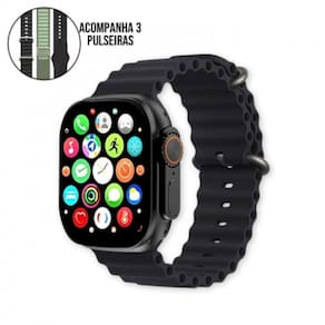 Relógio Inteligente Smartwatch Com 3 PulseirasCodificador, tela dividida, discagem por push, telefone, contatoshistóricos de chamadas, teclado de discagem, dados de atividademensagens, músicas, frequência cardíaca, oxigênio no sangue, pressãoarterial temperatura, despertador, assistente de voz (Siri), sonoexercício, tira uma foto, localizar seu telefone, localizardispositivos, tempo, cronômetro, respiração, calculadora, estilosde menu, configurações, recursos de componentes, recursos de saúdeda mulher, jogos, informações de localizaçãoDisplay:2,01 Touch ScreenBluetooth: bt3.0/5.3Resolução: 240x296 PixelBateria: 3.7V/220mAhMemória Flash: 16MBTipo de toque: Ecrã Full TouchDimensões: 49x43,3x13mmMaterial: Liga de zincoAplicativo suportado: Fere Fit disponível para Android/IOSItens inclusos:1. (Um) Relógio Inteligente Smartwatch Com 3 Pulseiras3. (Três) Pulseiras 1. (Um) Cabo de carregamento por indução1. (Um) Manual de instrução