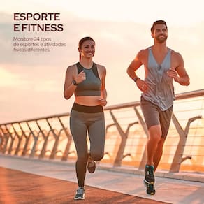 Acompanhamento de calorias gastas, saúde e distância em 24 modos esportivos, incluindo caminhada, corrida, natação, futebol, vôlei, corrida em esteira, dança, pular corda, tênis e academia.