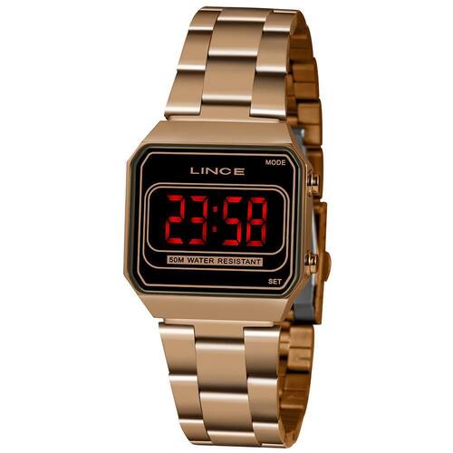 Relógio Led Feminino Classico Mdr4645L Rose Marca: Lince Gênero: Feminino Visor: Led Vermelho Linha: Led Vidro: Cristal mineral Funções: Calendário Pressão: 50 M Características: com caixa Rosegold e pulseira Aço Diâmetro da Caixa: 32 mm Ean: 7891529186824