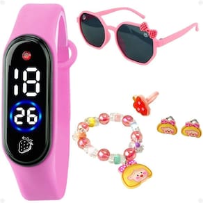 Relogio Led Infantil + Anel + Pulseira Brinco + Oculos Sol Social Led Silicone Ajustavel Presente Chegou o Kit de Acessórios Infantis Orizom Kids, perfeito para presentear as crianças! Com tema de morango e rostinho de criança, este conjunto traz alegria e estilo para os pequenos a partir de 5 anos. O Relógio Infantil Digital LED Orizom Modelo Kids é super charmoso, com detalhes de morango, pulseira ajustável em silicone e uma pedrinha de strass. A pulseira com pingente em forma de rosto de criança adiciona um toque encantador, enquanto o par de presilhas temáticas e o anel universal completam o conjunto, oferecendo ainda mais charme e diversão para o dia a dia. Não deixe de presentear com esse kit que une qualidade, conforto e diversão em acessórios pensados especialmente para as crianças. Aproveite e adquira já o seu!