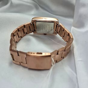 Características Formato do Relógio: Retangular Composição do Vidro: Cristal mineral Material da Caixa: Aço Inox Cor da Caixa: Rosê Cor do mostrador: Marrom Material da Pulseira: Aço Inox Cor da Pulseira: Rosê Mecanismo: Analógico Quartz