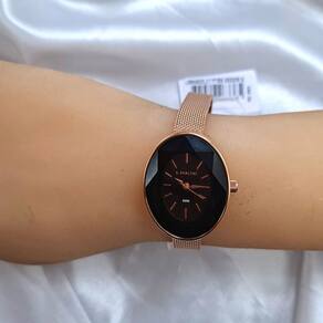 Características Formato do Relógio: Outros Composição do Vidro: Cristal mineral Material da Caixa: Aço Inox Cor da Caixa: Rosê, Preto Cor do mostrador: Preto Material da Pulseira: Aço Inox Cor da Pulseira: Rosê Mecanismo: Analógico Quartz