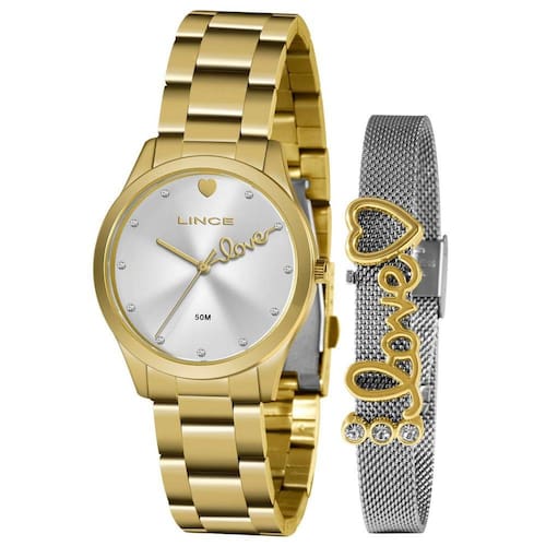 Descrição do Relógio Marca = Lince Modelo = LRG4668LKZ96 S1KX Gênero = Feminino Mostrador = Silver Bisel: Dourado Caixa = Dourado Mecanismo = Quartz / Analógico Calendário = Não Coroa = Simples Fundo = Pressão Resistência à água = 5 ATM (Lavar a Mão / Chuva / Piscina) Vidro = Cristal Mineral Material da caixa = Metal Diâmetro da caixa = 36 mm Diâmetro do visor = 30 mm Espessura da caixa = 9 mm Material da pulseira = Aço Inox Largura da pulseira = 18 mm Comprimento da Pulseira = 20 cm Fecho = Trava e Botão Peso do Relógio = 95 Gramas Fabricante = Orient Relógios da Amazônia LTDA Garantia = Garantia de 1 Ano direto com Fabricante Conteúdo da embalagem: 01 Relógio de pulso 01 Estojo Autêntico Manual em português Cerificado de Garantia do Fabricante Nota Fiscal Eletrônica