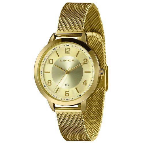 Relógio Lince Feminino Ref: Lrg4747l38 C2kx Casual Mesh Dourado DESCRIÇÃO DO PRODUTO: Caixa: Metal Pulseira: Malha de Aço Mesh Medida da caixa: 38 mm Vidro: Cristal Mineral Resistência à água: 50m Funções: Analógico Mostrador champanhe com números Fundo de Pressão Garantia de 1 Ano