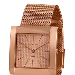 Marca: LinceReferência: LQR4664L R1RXGênero: FemininoCor da Pulseira: Rose goldCor da Caixa: Rose goldMaterial da Pulseira: Aço InoxidávelMaterial da Caixa: Aço InoxidávelTamanho da Caixa: 34 mm (3,4 cm) Resistência à água: 5 ATM (50 metros) Tipo de movimento: Analógico (Quartz) Características do vidro: Cristal Mineral