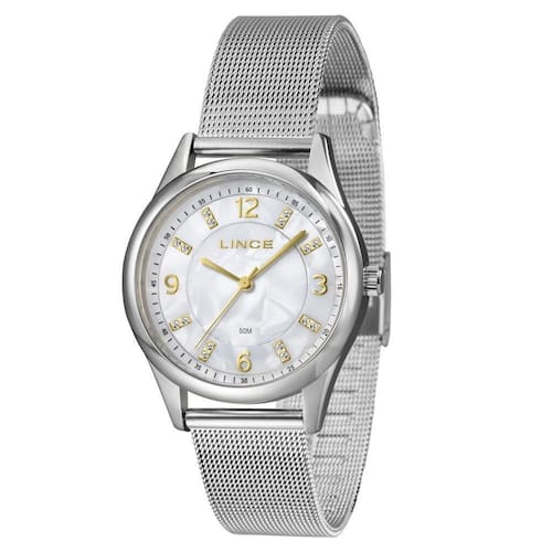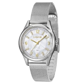 Relógio Lince Feminino Ref: Lrmj178l36 B2sx Casual Mesh Prateado DESCRIÇÃO DO PRODUTO: Caixa: Metal Pulseira: Malha de Aço Mesh Medida da caixa: 36 mm Vidro: Cristal Mineral Resistência à água: 50m Funções: Analógico Mostrador estilo madreperola branca com números e pedras Fundo Alimentação do Maquinário: Bateria Maquinário Japonês de 1 Ano