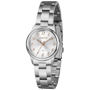 Relógio Lince Feminino Ref: Lrmm037l30 S2sx Social Prateado DESCRIÇÃO DO PRODUTO: Caixa: Metal Pulseira: Aço Medida da caixa: 30 mm Vidro: Cristal Mineral Resistência à água: 50m Funções: Analógico Mostrador Prateado com todos os números Fundo Alimentação do Maquinário: Bateria Maquinário Japonês de 1 Ano