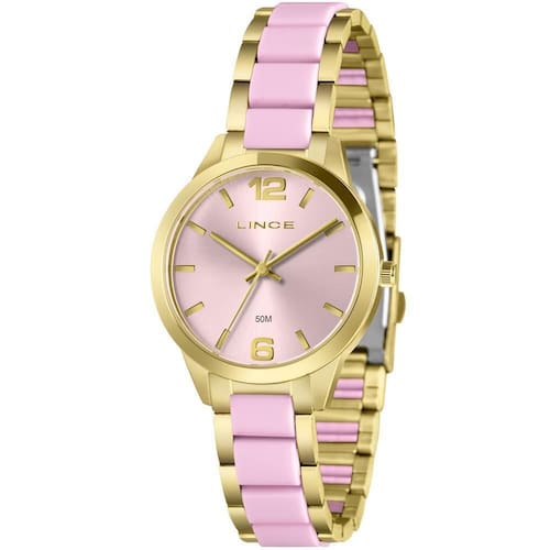 Relógio Lince Feminino Ref: Lrt4800l36 R2kr Fashion Bicolor DESCRIÇÃO DO PRODUTO: Caixa: Metal Pulseira: Aço com detalhes em resina rosa Medida da caixa: 36 mm Vidro: Cristal Mineral Resistência à água: 50m Funções: Analógico Mostrador rosa com números Fundo Alimentação do Maquinário: Bateria Maquinário Japonês de 1 Ano Marca: Não Informado