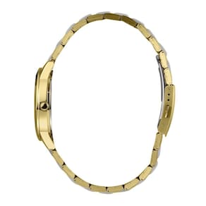 Caixa: Metal Pulseira: Aço com detalhes em resina branco Medida da caixa: 36 mm Vidro: Cristal Mineral Resistência à água: 50m Funções: Analógico Mostrador estilo madreperola branco com números Fundo de Pressão Alimentação do Maquinário: Bateria Maquinário Japonês