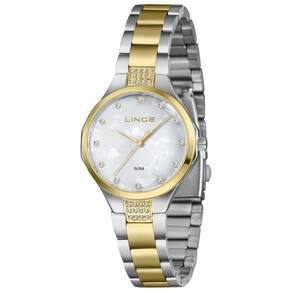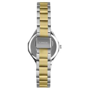 Relógio Lince Feminino Ref: Lrtj181l34 B1sk Fashion Bicolor DESCRIÇÃO DO PRODUTO: Caixa: Metal Pulseira: Aço com pedras Medida da caixa: 34 mm Vidro: Cristal Mineral Resistência à água: 50m Funções: Analógico Mostrador Estilo madreperola branca com pedras Fundo Alimentação do Maquinário: Bateria Maquinário Japonês Prateado com Dourado de 1 Ano Marca: Não Informado Ean: 7891529268285
