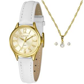 Características Formato do Relógio: Redondo Composição do Vidro: Cristal Mineral Material da Caixa: Aço Inox Cor da Caixa: Dourado Cor do mostrador: Dourado Material da Pulseira: Couro Cor da Pulseira: Branco Mecanismo: Analógico Quartz