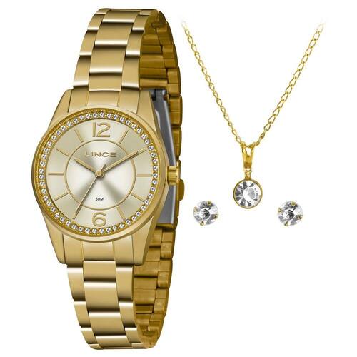 Kit Relógio Lince Feminino Classic Dourado LRGJ112L-KY63C2KX Marca: Lince Modelo: Classic Gênero: Feminino Mecanismo: Quartz Tipo: Analógico Formato: Redondo Pulseira: Aço Cor: Dourado Tamanho da Caixa: 3,1 cm Resistencia: 5ATM Garantia : Este relógio foi adquirido junto ao representante legal e possui 12 Meses de Garantia
