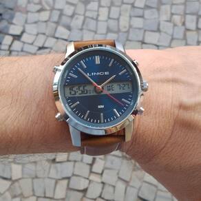 Relogio Lince Masculino anadigi pulseira couro MAC4489L D1MB Medidas:- Diâmetro da Caixa: 46 mm medida sem a coroa - Diâmetro da Caixa: 49 mm medida com a coroa - Espessura da caixa: 14,5 mm- Comprimento da pulseira: 24 cm- Peso: 88 gramas Funções: - Luz - Cronômetro - Alarme - Calendário GARANTIA:12 meses em toda a rede de assistências Orient no Brasil Cor da caixa: PrataCor do mostrador: AzulCor do aro: PrataCor da pulseira: MarromMaterial da caixa: Aço Material da pulseira: CouroTampa do fundo: ParafusadaVidro: Cristal MineralMecanismo: digital e analógicoMáquina: Quartz Movido a Bateria RESISTÊNCIA A ÁGUA: 50 metros 5atm Pode lavar as mãos SIM Pode tomar banho de chuveiro SIM Pode usar em piscina: SIM Pode usar em mergulho profundo NÃO Fabricante: Orient Relógios da Amazônia LTDA ACOMPANHA: Relógio Caixinha Lince certificado de Garantia / Manual em Português
