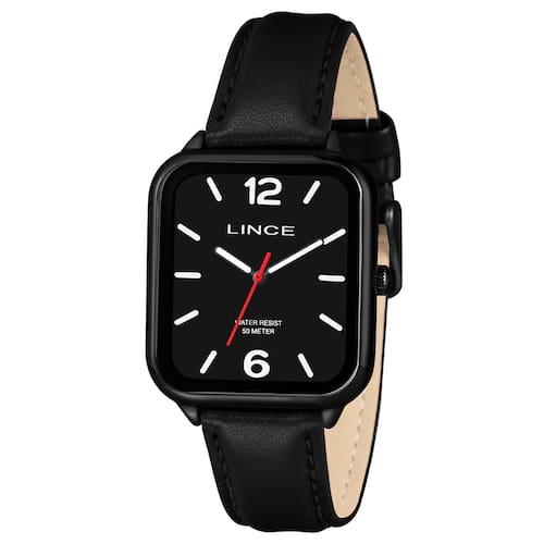 Características: com caixa PRETO e pulseira Em Couro