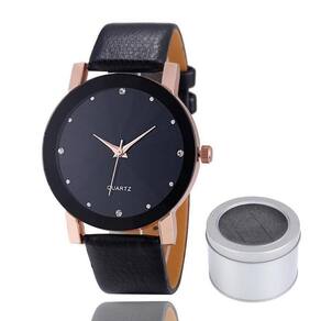 Relógio Luxo Feminino Casual Rosé Pulseira de Couro Sport Preto InTimes Design premiado e sucesso de vendas no mundo todo, este é o relógio do momento. excelente relógio design italiano, luxoso e extremamente elegante, perfeito para causar um grande impacto. lindo relógio feminino preto, caixa de aço na cor rosé, pulseira de couro e marcadores cravejados com brilhantes.