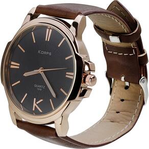 Relógio Luxo Masculino Korps 1319 Bronze Fundo Preto Pulseira Couro Marrom Design premiado e sucesso de vendas no mundo todo, este é o relógio do momento. Excelente relógio design italiano, luxoso e extremamente elegante, perfeito para causar um grande impacto.