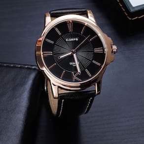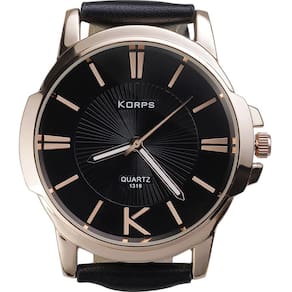 Relógio Luxo Masculino Korps 1319 Bronze Fundo Preto Pulseira Couro Preta