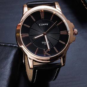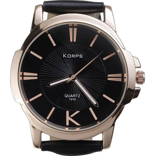 Relógio Luxo Korps 1319 Bronze Fundo Preto Pulseira Couro