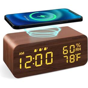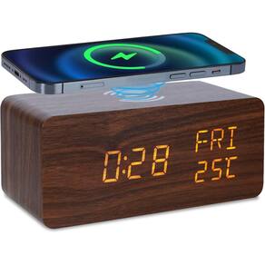 Relógio Madeira Despertador Led Controle voz Carregador Indução Data Hora Temperatura 3 alarmes sensor liga e desliga O Relógio Digital de mesa retangular com visor de led com temperatura e hora ideal para informar e decorar a sua casa. Ao ligá-lo você pode ver o relógio digital de LED com 3 intensidades de luminosidade, através de uma fina camada de madeira mdf. Ele projeta a temperatura e data, revezando-as automaticamente. Além disso, possui o modo voz: ao fazer algum barulho nas proximidades, como bater palmas, ele liga. É demais né Um presente perfeito para quem gosta de peças descontraídas para decoração. Características Técnicas/Especificações: Material: MDF Dimensões: 6,5cm x 6,5 cm Bateria de moméria do sistema em caso de queda de energia Fonte de energia: Bateria carregada por cabo USB acompanha ou a pilhas não acompanha Peso: 150g Para configurar: Segure o botão SET apertado para iniciar as configurações. Primeira opção: Selecionar o ano. Segunda opção: Calendário MÊS/DIA Terceira opção: Hora e minutos. Quarta opção: Escolher entre os formatos 12 ou 24 horas. Quinta opção: Configurar alarme 1 A1 . Apertar UP para ativar e DOWN para desativar -- . Sexta opção: Configurar alarme 2 A2 . Apertar UP para ativar ON e DOWN para desativar -- . Sétima opção: Configurar alarme 3 A3 . Apertar UP para ativar e DOWN para desativar -- . Última opção: Função de som SD para manter o display desligado e ativar com uma palma. Apertar UP para ativar e DOWN para desativar -- . Obs: Ele desperta mesmo com o display desligado no modo SD. Itens inclusos: 01 Relógio 01 Cabo USB carregador do vendedor: 1 meses Marca: Não Informado