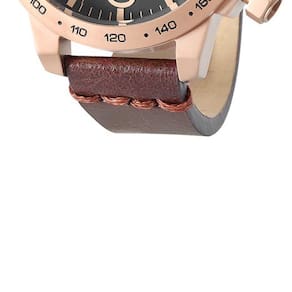 Características - Vidro: Cristal Mineral - Material da caixa: Aço - Cor da caixa: Bronze - Material da pulseira: Couro - Cor da pulseira: Marrom - Diâmetro da caixa: 5 cm - Mecanismo: Quartz - Funções: Analógico / Calendário / Cronógrafo Resistência à água - 10 atm - Pode lavar as mãos: Sim - Pode lavar em água corrente: Sim - Pode usar em piscinas: Sim - Pode usar em mergulhos profundos: Não - Pode tomar banho: Não