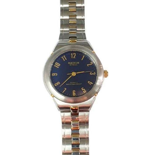 Relógio Magnum Feminino MA28396A-Misto-Mostrador Azul Informações Básicas - Marca: Magnum - Modelo:Steel - Referência:MA28396A - Genêro: Feminino - : 1 Ano em Toda Rede de Assistência Técnica Magnum no Brasil Características: - Composição do Vidro: Cristal Mineral - Material da Caixa: Aço - Cor da Caixa: Bicolor - Material da Pulseira: Aço - Cor da Pulseira: Bicolor -mostrador: Azul Marinho Medidas - Diâmetro da Caixa:2,7 cm -diâmetro da Pulseira: 12mm -comprimento total do relógio: 19cm -peso:40 gramas Resistência à Água - WR:50 Mts - Pode Lavar as Mãos: SIM - Pode Usar em Água Corrente: SIM - Pode Usar na Piscina: NÃO - Pode Usar em Mergulho Profundo: NÃO