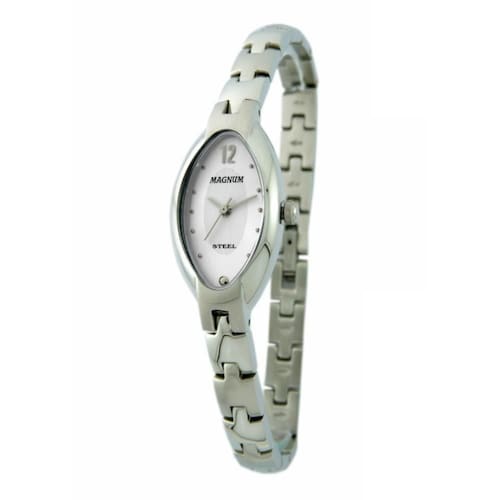 Relógio Magnum Feminino Ref: Ma28592n Oval Prateado DESCRIÇÃO DO PRODUTO: Caixa de Aço Inoxidável Pulseira de Aço Inoxidável Fundo Vidro: Cristal Mineral Resistência à água: 3 Atm Diâmetro / Largura da Caixa: 18.00 MM x 30.00 MM Funções: Analógico Alimentação do Maquinário: Bateria Mostrador Prateado com número Estilo Clássico 2 Anos de