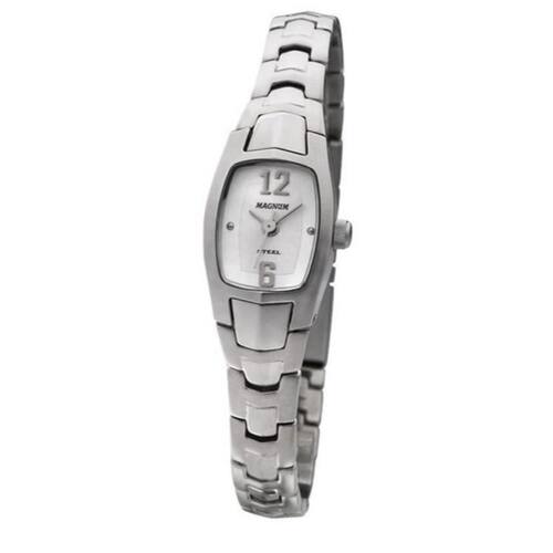 Relógio Magnum Feminino Ref: Ma28663q Retangular Prateado DESCRIÇÃO DO PRODUTO: Caixa de Aço Inoxidável Pulseira de Aço Inoxidável Fundo Vidro: Cristal Mineral Resistência à água: 3 Atm Diâmetro / Largura da Caixa: 15.00 MM x 18.00 MM Funções: Analógico Alimentação do Maquinário: Bateria Mostrador Prateado com números Estilo Clássico 2 Anos de